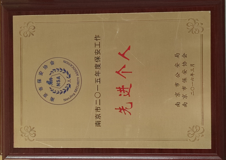江蘇中祥保安公司榮獲南京市2015年度保安工作先進(jìn)個人